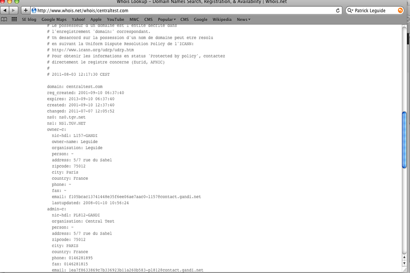 We then chose to look at what date the Aptiquant website was registered 14 July. The company claimed to have been established in 2006. The Central Test site was registered in 2001 (see below for registration details - Central Test above, AptiQuant below).