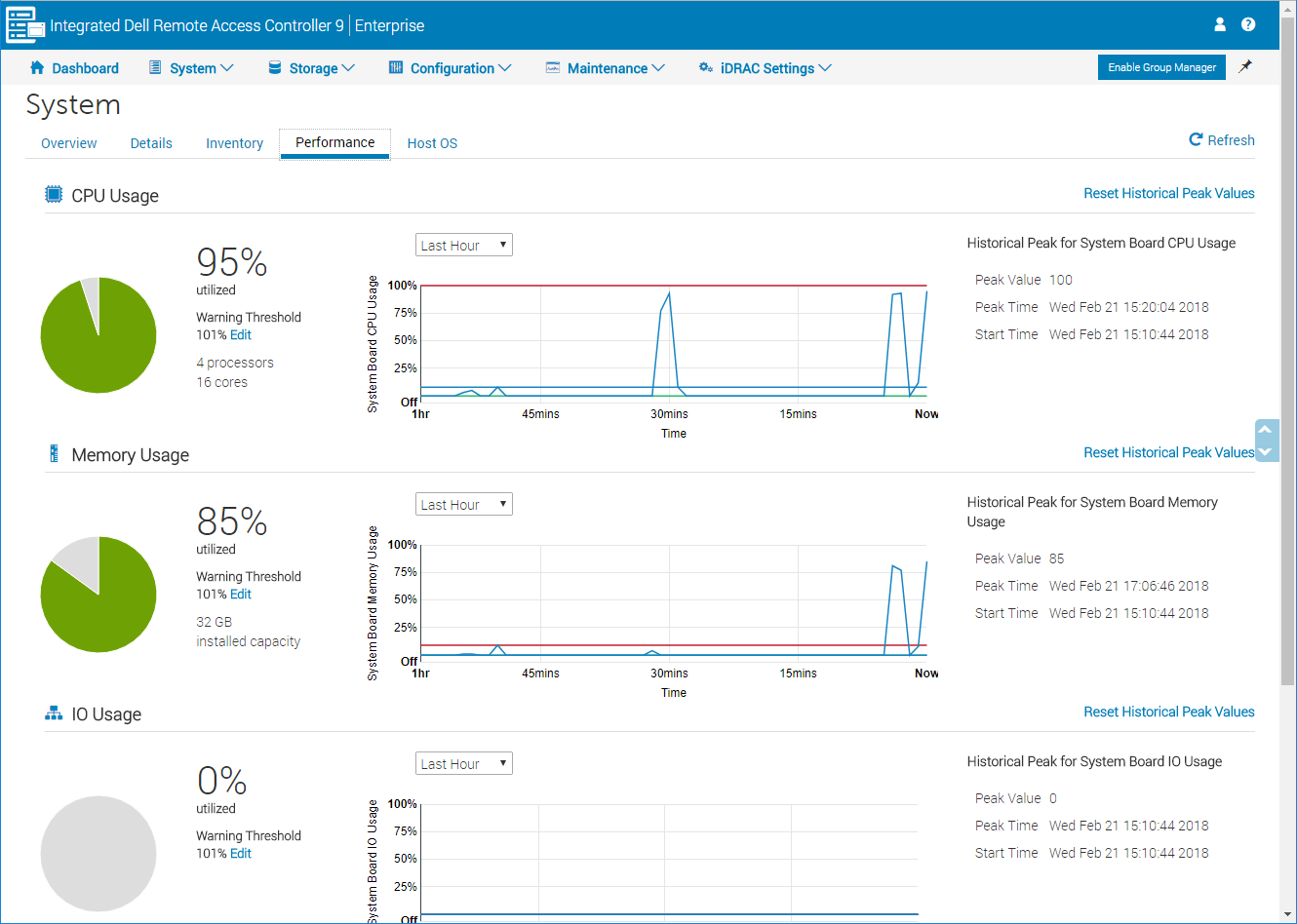 The R940 sports Dell EMC's latest iDRAC9 controller which presents a classy HTML5-based web interface. This offers a veritable treasure trove of information on every critical component, a full system inventory, multiple performance graphs and direct configuration access to the PERC RAID controllers.