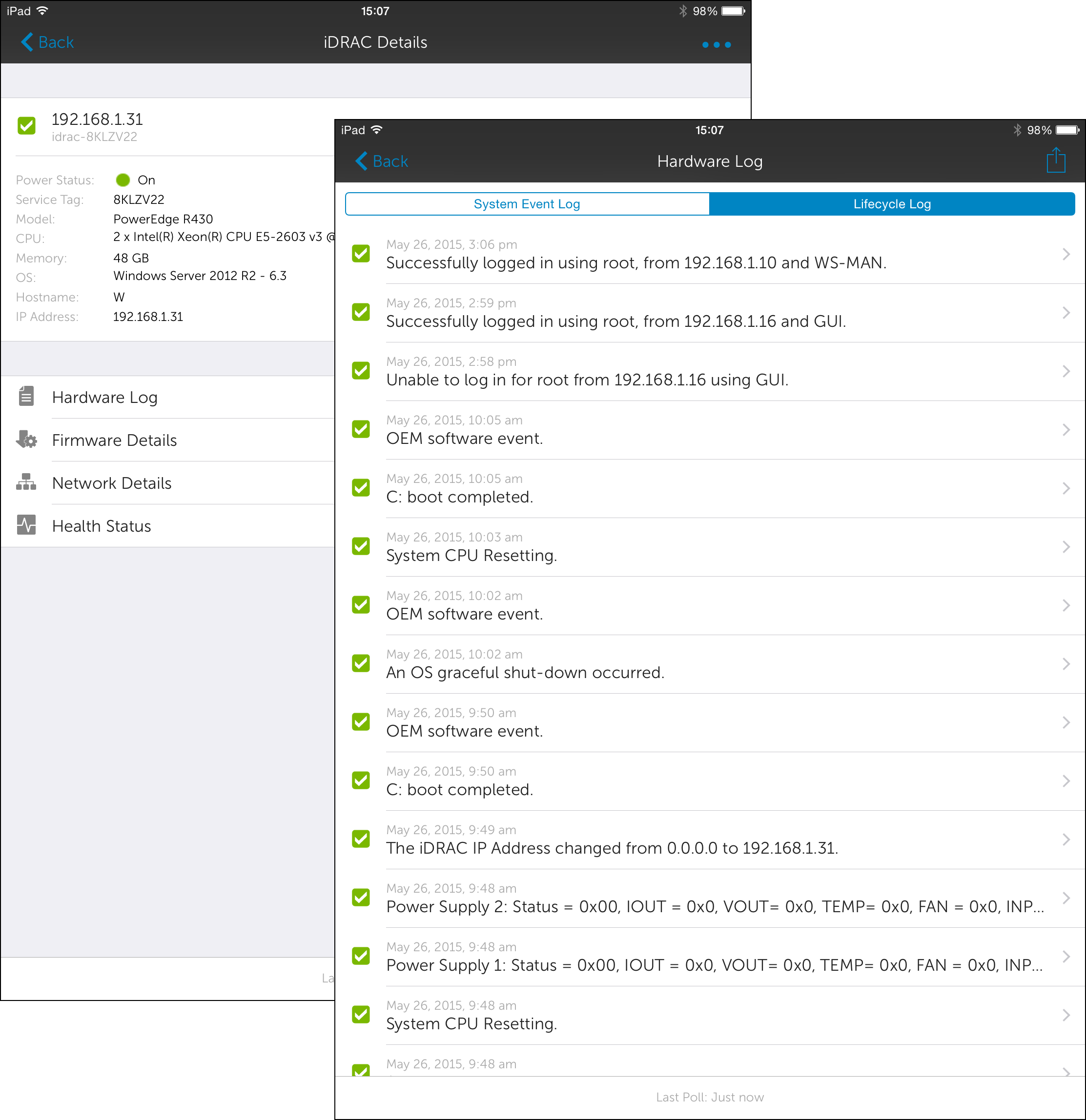 Dell's OMM iOS app allowed us to keep a close eye on the server from our iPad